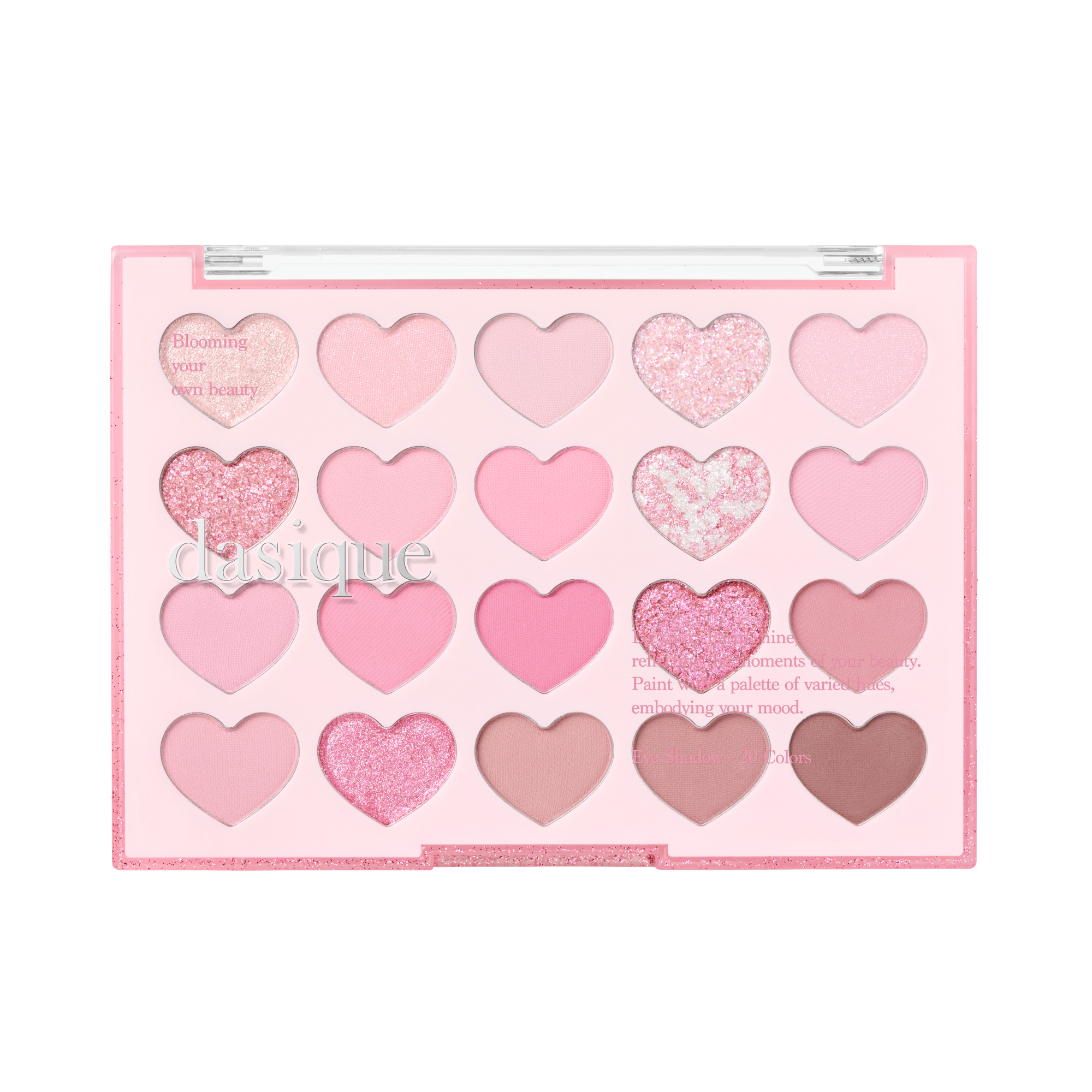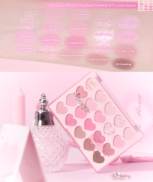 Яркая лимитированная палитра состоит из 20 матовых и сияющих оттенков для создания ежедневного образа, эффекта «влажного» века и утончённого вечернего макияжа. Сочетание чувственного розового, блестящего глиттера и глубины матового каштана создаёт притягательный образ, наполненный хрупкой утончённостью. Воздушная текстура придает частичкам теней атласный оттенок, подчёркивая красоту и чувственность глаз каждой девушки.