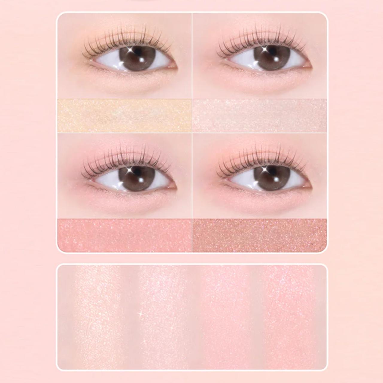 Нежная палитра теней для век из коллекции, вдохновлённой эстетикой балетного искусства. Содержит 4 дополняющих друг друга оттенка с матовым, сатиновым и сияющим финишем. Палетка подойдёт для создания нежных градиентных макияжей в светлых розовых тонах с тонким мерцающим акцентом.