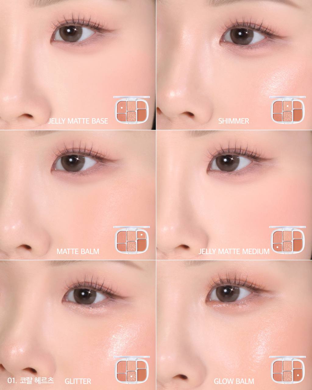 Палетка теней для век в оттенках нежного коралла для создания дневного и вечернего макияжа. Содержит 6 оттенков с матовым, кремовым и сияющим финишем. Бархатистая формула обеспечивает комфортное нанесение и стойкую пигментацию.