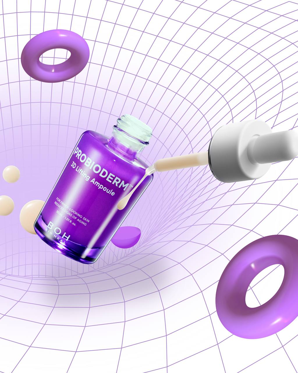 Сыворотка разработана для всех типов зрелой кожи и направлена на комплексное решение возрастных изменений. Действие лифтинг-ампулы основано на эксклюзивной разработке бренда BOH – усовершенствованной формуле 3D лифтинга, которая значительно повышает упругость кожи, подтягивает контуры лица, устраняет брыли и препятствует появлению глубоких заломов. Синергия укрепляющих и пробиотических активов насыщает эпидермис влагой, разглаживает морщины, выравнивает тон, уплотняет кожу, продлевая молодость и красоту.