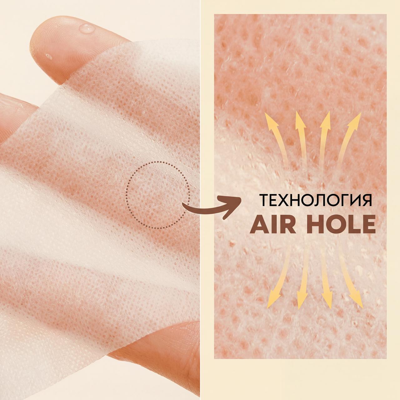Маска, выполненная на тканевой основе с применением технологии Air Hold, плотно прилегает к лицу, обеспечивая ему нормальное дыхание. При этом она не вызывает раздражений и ощущения стянутости.